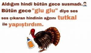 Kelime Hikayeleştirme: Aldığım hindi bütün gece susmadı. 🙁 Bütün gece “glu glu” diye ses çıkaran hindinin ağzını tutkal ile yapıştırdım.